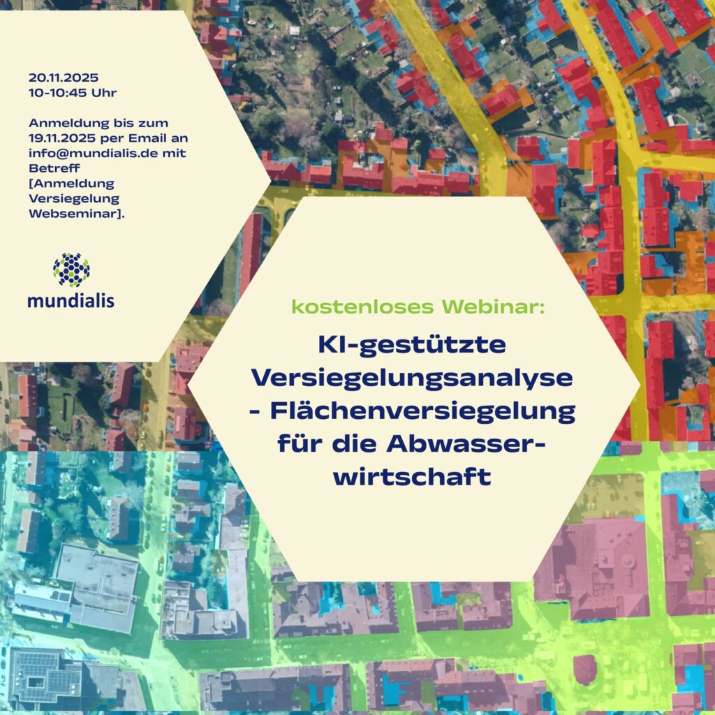 Wir laden Sie und Euch herzlich zum Webseminar „KI-gestützte Versiegelungsanalyse – Flächenversiegelung für die Abwasserwirtschaft“ am 20.11.2025 von 10-10:45 Uhr ein!